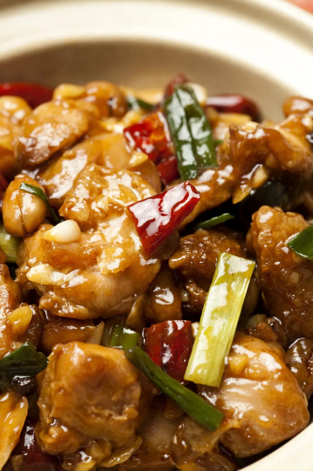 甚至我“有幸”尝过一家台湾菜里的“台式宫保鸡丁”——大约就是三杯鸡里放了花生,让文天祥和丁宝桢梦幻联动;漂洋过海之后,美式的“Kung-pao chicken”把甜味发挥到极致,口感好似放软的锅包肉。