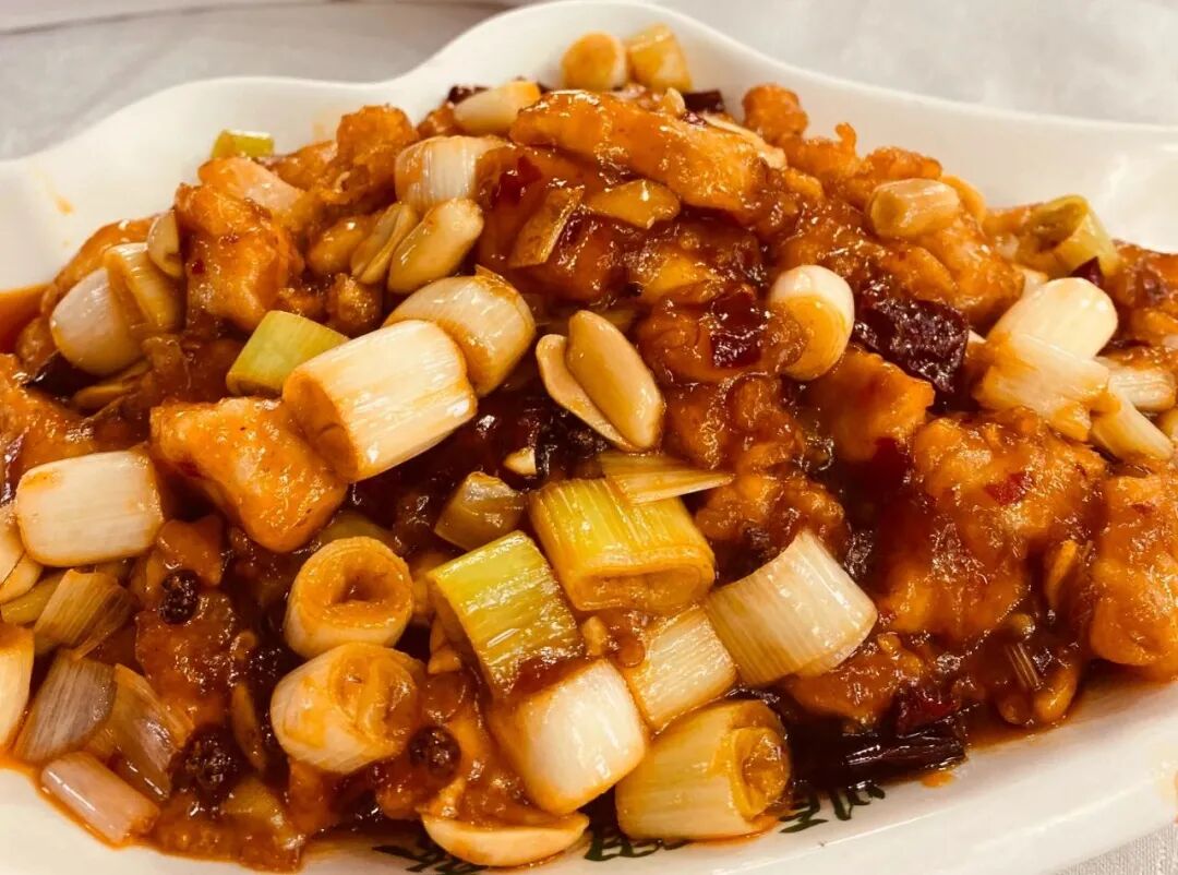 事实上早期川菜,甚至是全国各地菜肴,多多少少都能见到身为“八大菜系之首”的鲁菜的底色——宫保鸡丁里满盘豪横的大葱,简直就是山东菜的标配,尤其是济南的章丘大葱,鲜脆爽嫩,香气四溢,年轻的小子总把鸡丁一扫而光,懂吃的老饕才知道饱吸酱汁的葱段才是下饭绝品。