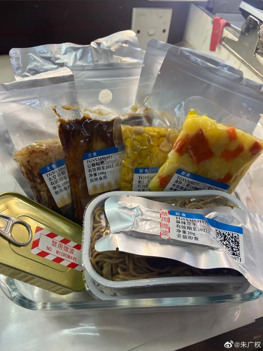 ▲ 这是航天员的太空日常套餐。 图/微博@朱广权