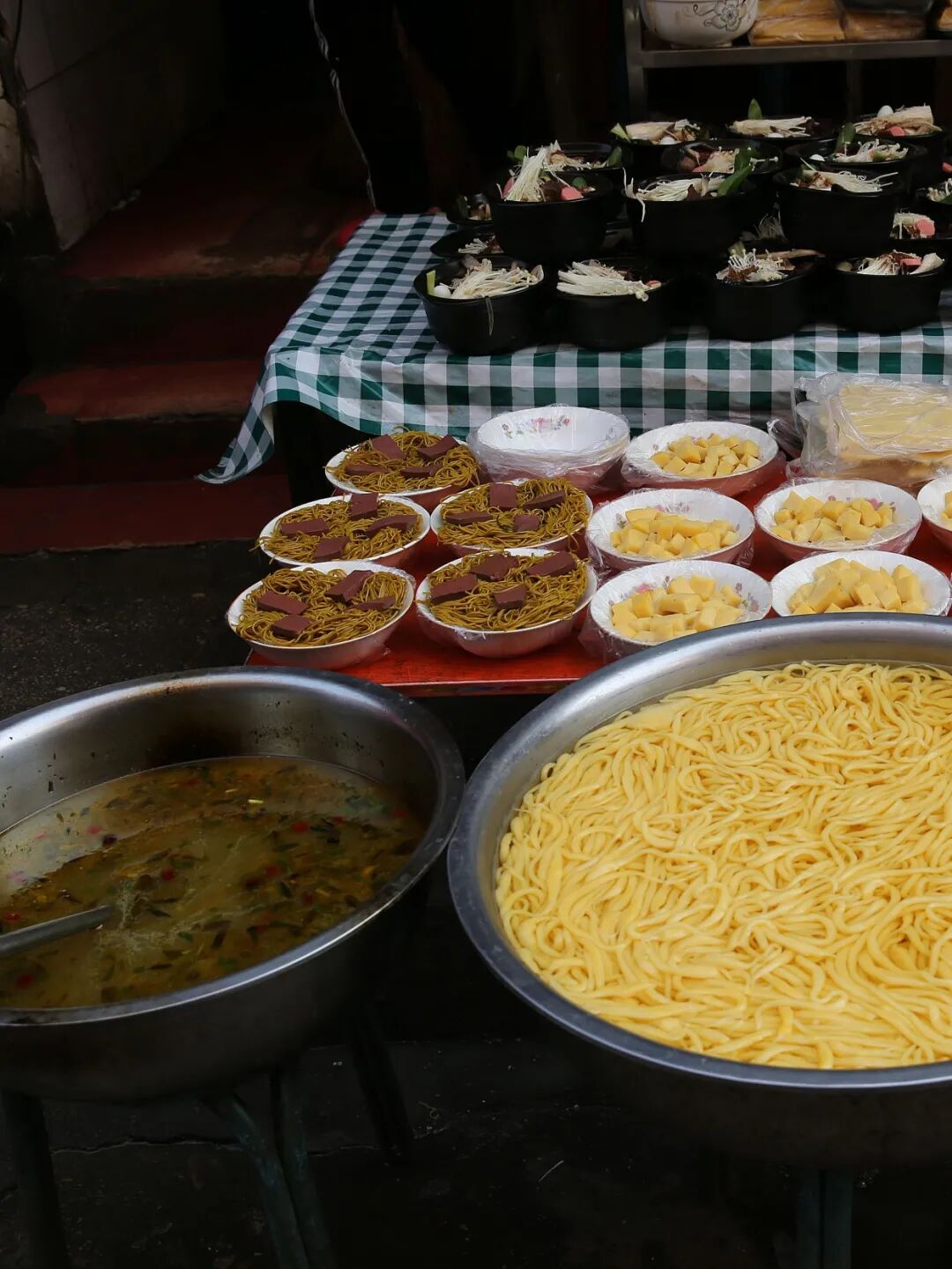 ▲ 右边是用玉米面做的鱼鱼儿,左边是浆水,夏天陕甘地区大街小巷都能见到。图/视觉中国