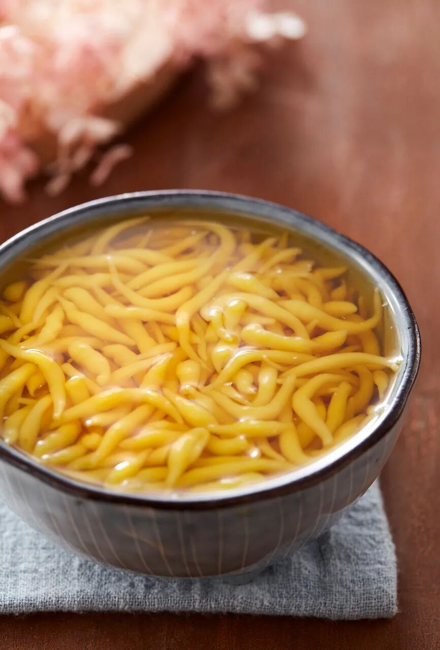 漏鱼做好了,搭配的汤水也是“拿分点”。红油咸菜辣汤、素臊子汤,打卤汤,漏鱼简直百搭,但在夏天,浆水酸菜才是漏鱼的“梦中情人”。一碗浆水漏鱼,清爽开胃,让人食欲大增,喝几碗都不够!