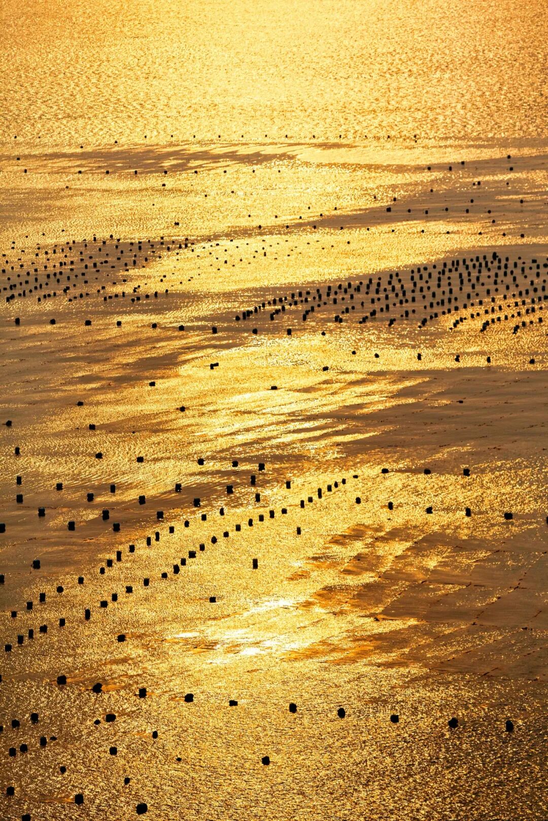 在嵊泗列岛的枸杞岛沿岸,成千上万亩的贻贝养殖基地,将海面点染得珠光宝气,舟山人耕海牧渔,打造出一片梦幻般的“海上牧场”。