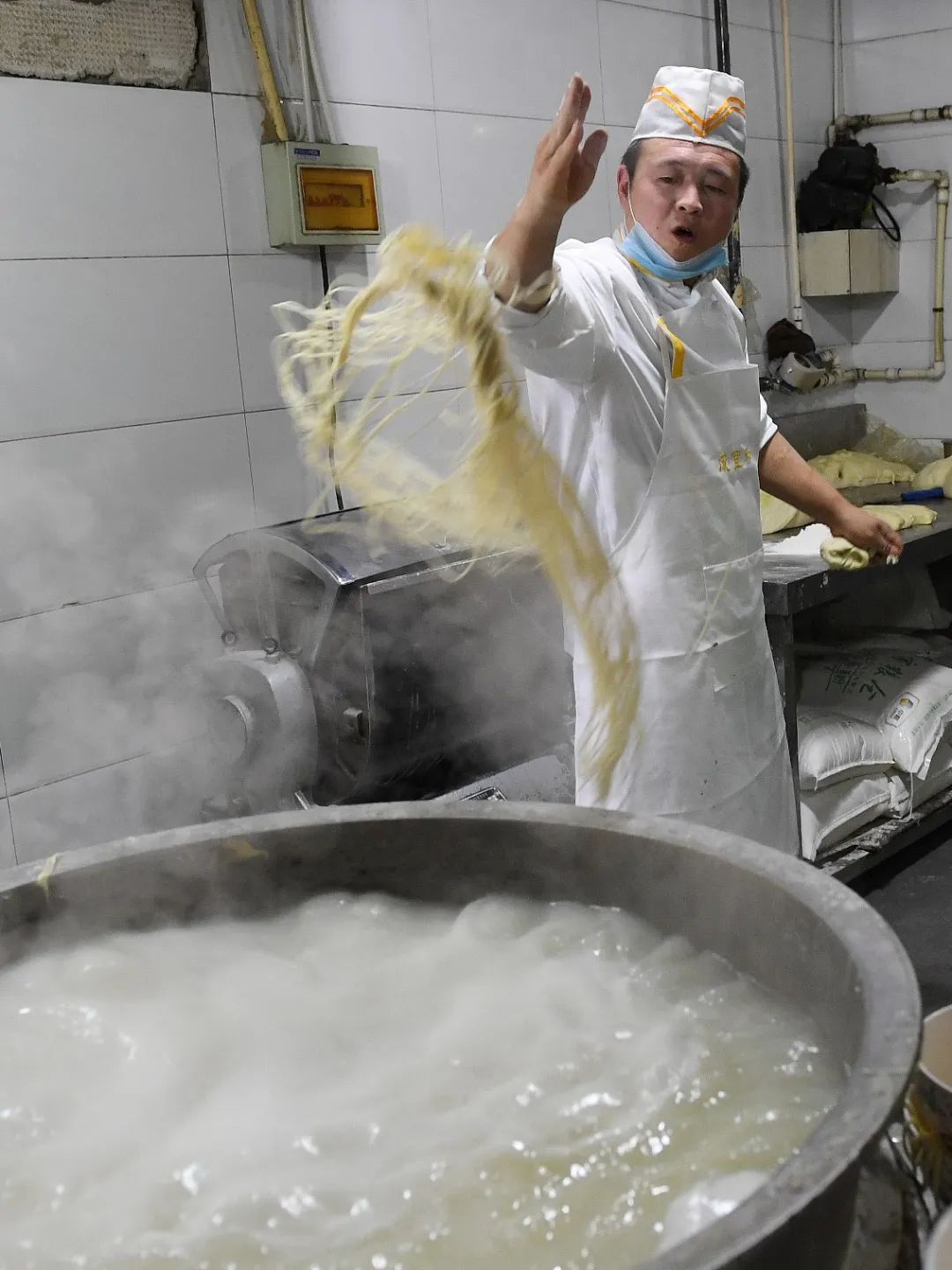 ▲ 在熟练的拉面师傅手里,一碗面拉成不过十几秒时间。 图/视觉中国