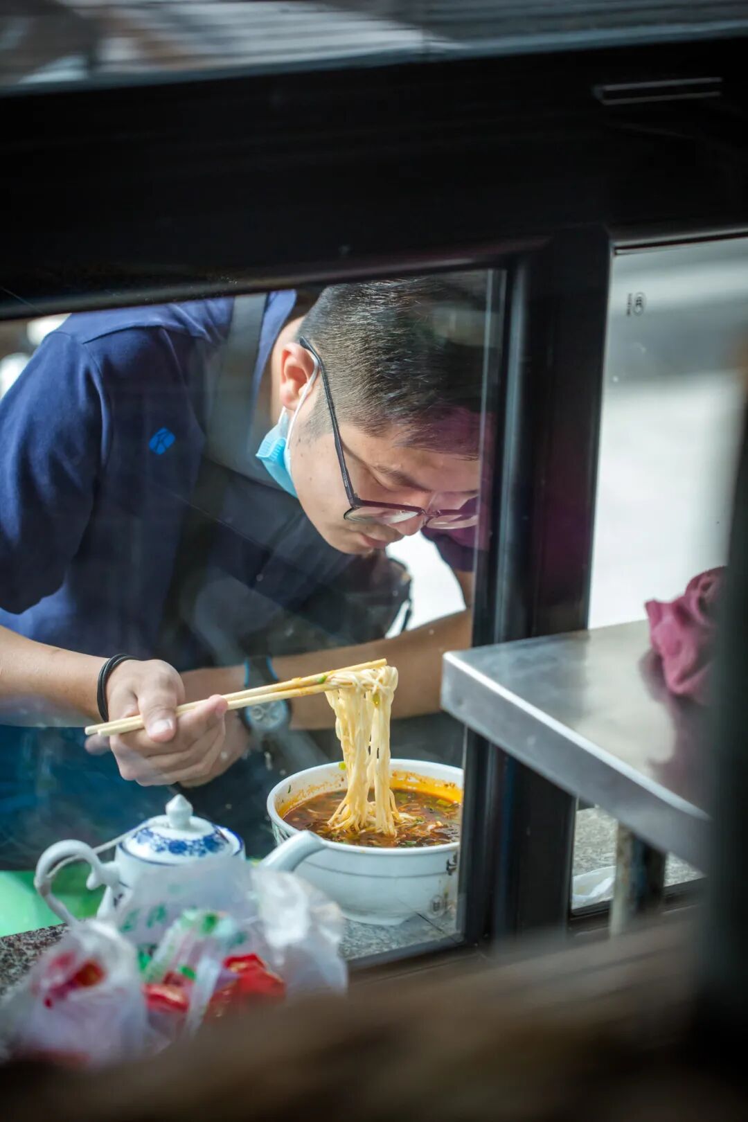 ▲ 对兰州人来说吃面的时机比环境更重要,绝不能等到面泡绵了再下筷子。多数兰州人都会吃碗面抹嘴就走,麻利干脆,给他人腾出座位。图/严肃