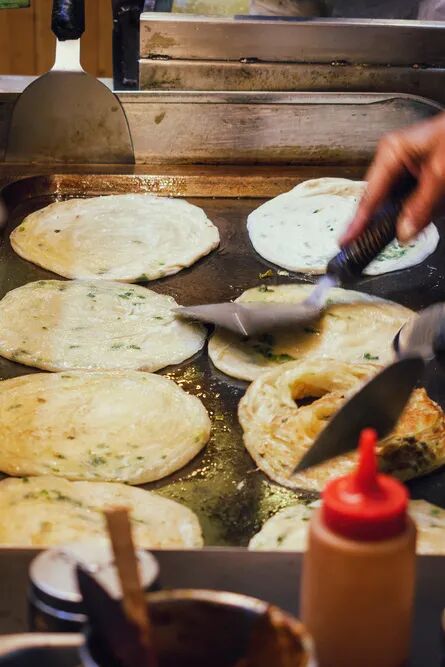 鞋店收掉,开始卖饼。不出老板所料,“天津葱抓饼”果然一炮而红。台北永康街,本就食肆林立,这回有了新晋网红美食,还是全新口味,更加人满为患了。2004年,上海一位柴姓老板,慕名来到台北,品尝了这款脍炙人口的“台湾小吃”……
