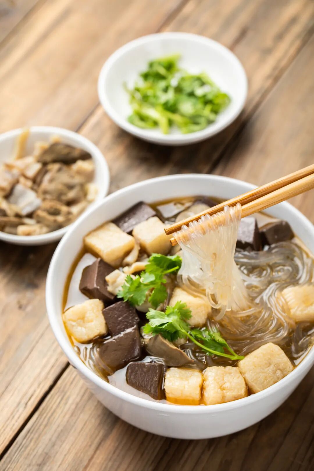 再往下游去,便是天下众鸭的鸭生终点站——南京。鸭子的躯壳,被南京人做成烤鸭、盐水鸭、任何鸭;鸭子的内在,也都进了南京人的砂锅里。对,就是名声大噪的鸭血粉丝汤,盐卤过的鸭杂与鸭血切丁,与红薯粉丝一起,一锅接着一锅,谱写着金陵独有的味道。