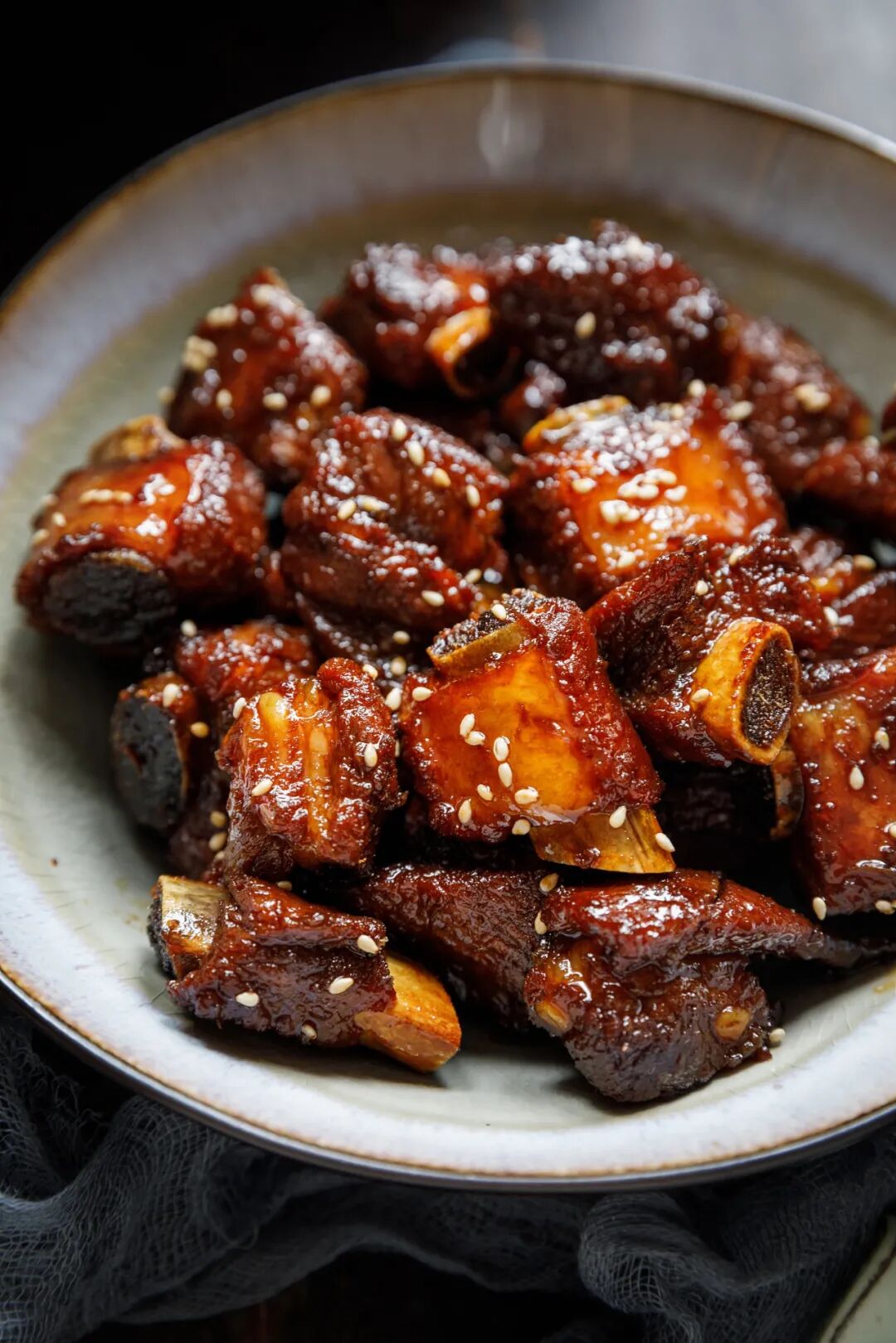 家家都爱吃的糖醋排骨,排骨在油锅里炸得金黄酥脆,浓浓的糖、醋、酱油熬上一锅糖醋汁,将肉块紧紧缠裹其中。炸透了的排骨饱吸糖醋滋味,松脆的表面覆上一层晶莹流动的糖壳,酸甜直击灵魂。