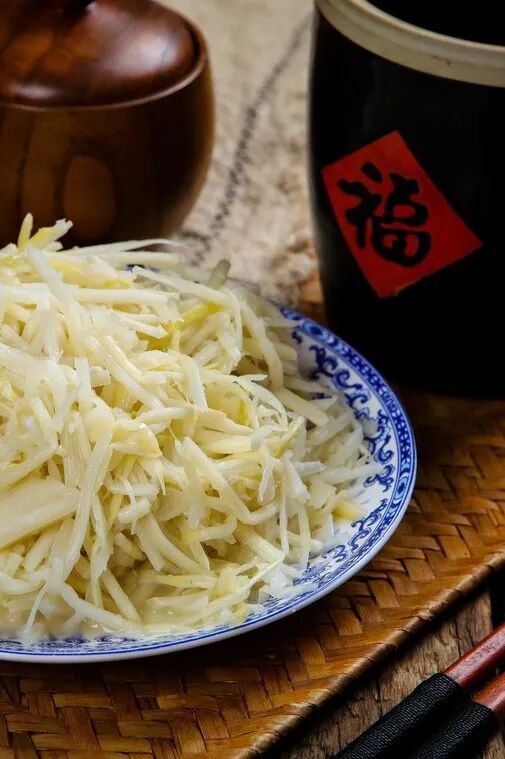 一年之中,夏季是做酸笋最好的时节,夏季生长的苦笋用作原料,剥去外壳切成白嫩的笋丝,初腌制时为清水,待酸笋制成,清水变作乳白色,魔性的气味“臭”遍十里长街,此时的笋子是一等一的酸脆。