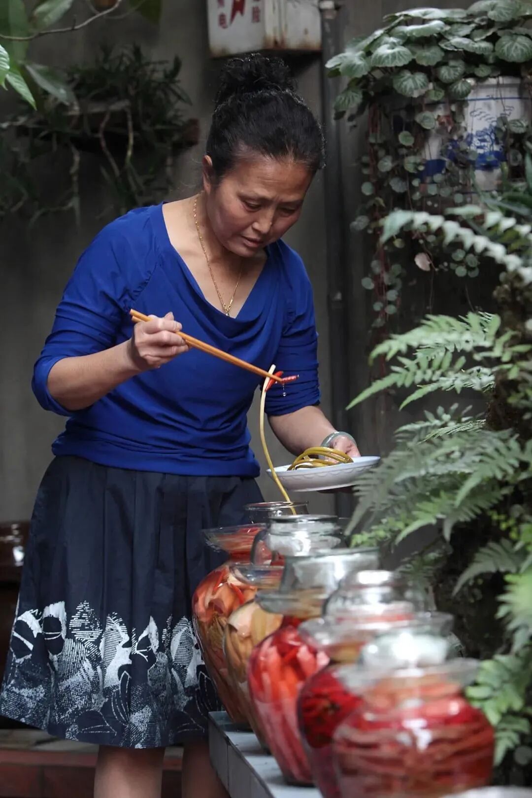 泡的时间长的那些则叫“深水菜”,姜、蒜、辣椒等都在此列。在盐与白酒的作用下,泡菜们拥有了极其浓郁的风味,作为配料加入菜肴,总能让人感受到扑面而来的四川气息。酸菜鱼,泡椒鸡杂,都是桌上常客。