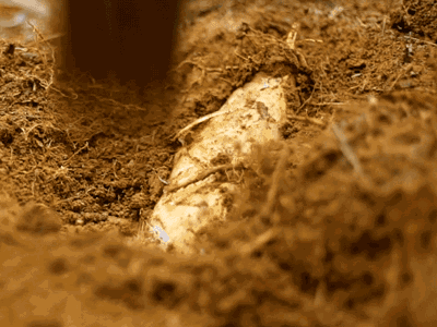找到它了,只见农人高举锄头、精准下落,小心翼翼地刨土寻笋。就算再馋,挖冬笋也不能使蛮力,一来避免切断竹根,二来要让藏在土里的小胖墩,完完整整地见一回世面。