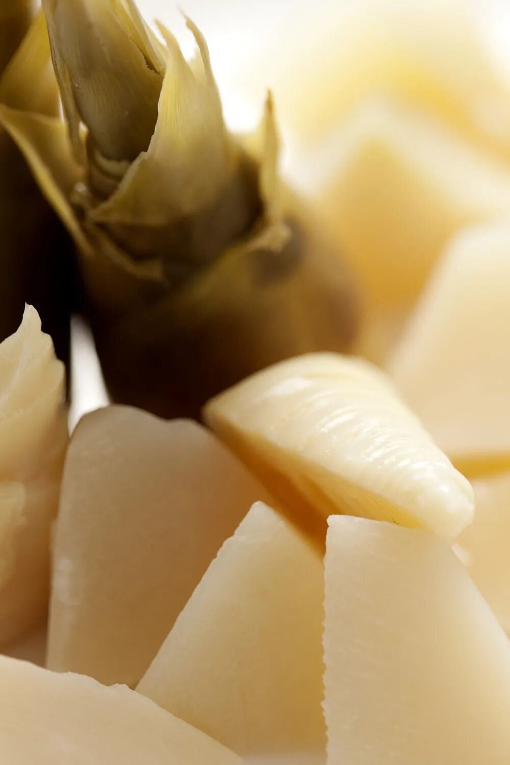 至于竹笋的嫩口感,取决于膳食纤维的占比。大致上,膳食纤维越少,食物的口感就越嫩;每百克冬笋约有膳食纤维0.8克,春笋约有2.8克。所以,若论身子娇嫩,还是冬笋略胜一筹,毕竟人家胖墩墩的,纤维感弱呀。