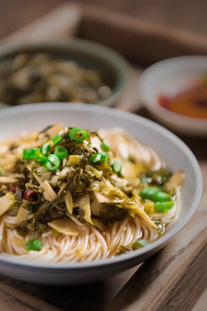 江南人家,古有腌雪菜的习俗。它真名“雪里蕻”,腌制后褪去了青涩面容,多了一份岁月风韵;切碎了入锅翻炒,再加入细细切片的冬笋,恰似两股冬日气息的邂逅,便是江南的岁寒之味——雪菜冬笋。夹一小把放入口中,两股畅快的清香相互交融,美啊。