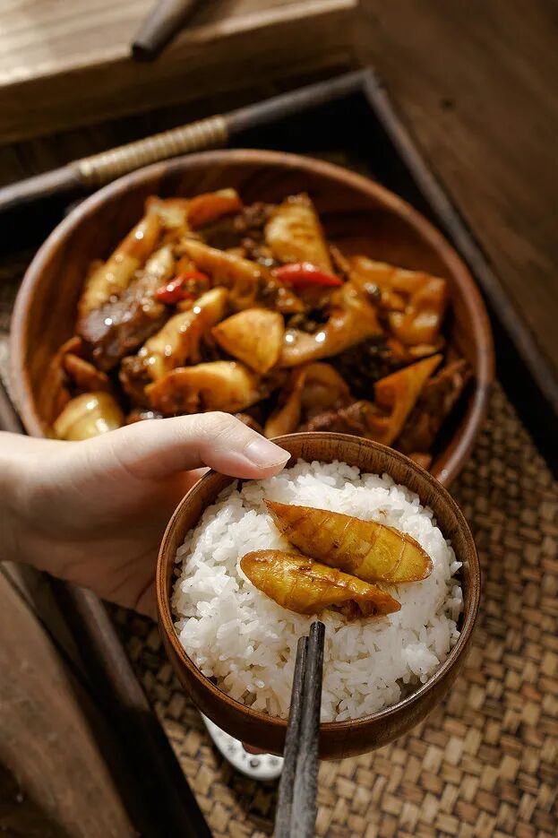 首先,是那一味山林间的清新质朴,就像稍纵即逝的雾霭,不经意间抓住你的舌头,让你流连忘返。尽管自己鲜得很,但它也懂得“为笋处事”,能稳稳衬托食材的味道。有经验的厨师,视笋为提鲜之物,盘活一切珍馐;有追求的食客,视笋为山味之珍,点化人间佳肴。