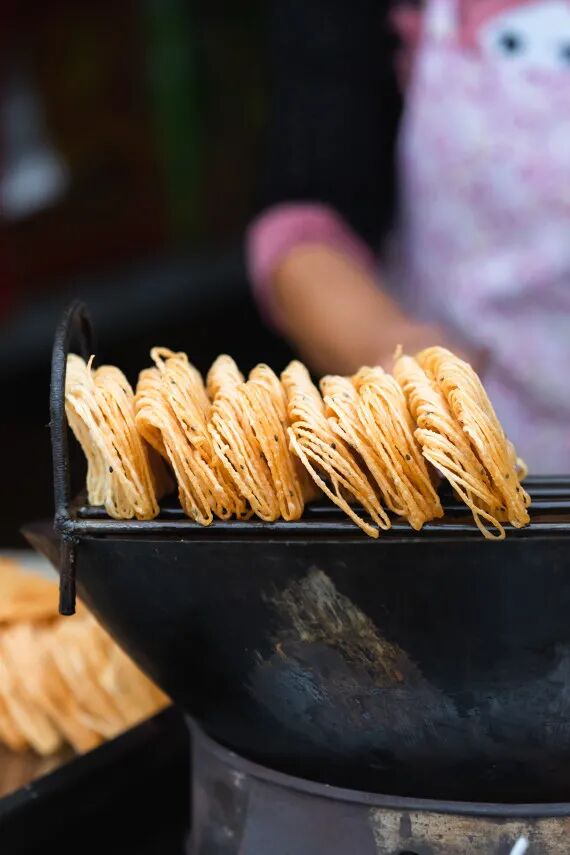 淮安茶馓,又叫“细环饼”,以芝麻油和面,拌入精盐与绵白糖,拉成纤细油亮的韧面丝,一圈圈绕在手掌上,最后以芝麻油酥炸而成。热爱芝麻油,这是淮安的北方一面;细细的茶馓,又是南方的身姿。这味茶馓,脆香中带有一丝细腻,佐上一壶好茶,又是美妙的一天。