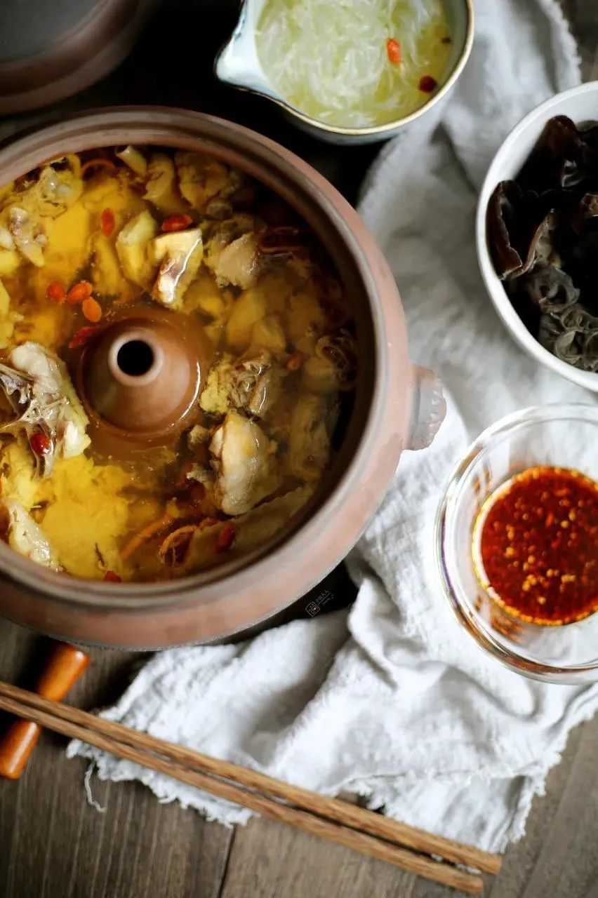 云南蒸菜最特别,当地人人都爱的汽锅鸡,锅具外形近似火锅,中央留有小孔(汽嘴),蒸鸡时将汽锅置于汤锅沸水之上,蒸汽通过小孔蒸熟鸡肉,耗时长达数小时。