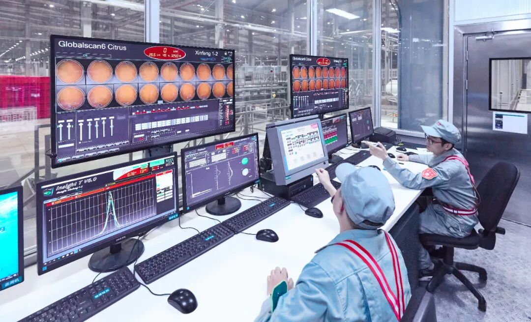 “九死一生”后,被摘下的橙子还得“过五关斩六将”:每年11月,大量优秀的原橙进入农夫山泉工厂,通过高科技进行“选美大赛”。