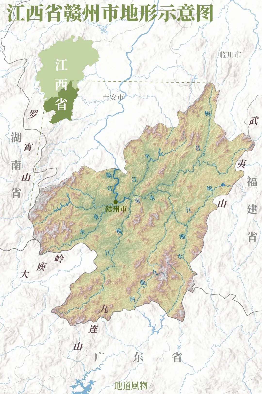 是的,整个赣州,如同生长在山水襁褓之中:东有武夷山脉,西有罗霄山,南有九连山,北有于山,山地丘陵将赣州盆地紧紧包围;章水、贡水穿城而过,与数十条支流汇成赣江,穿越群山、浩浩荡荡向北流,直入鄱阳湖,大江东去浪淘尽。