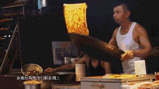 如何分辨一家豆皮店的好坏呢,一看人流,二要看师傅的“舞姿”。长期在铁锅的“磨炼”下,一般的豆皮师傅都会有一种朋克的舞姿,做豆皮的时候不自觉地摇摆起来。这不是营销手段,而是他们对食物的热爱在身体上的反应。