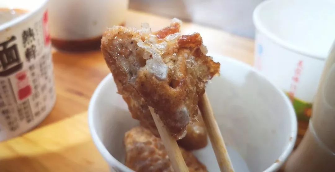 油条与糯米结合而成“糯米包油条”也产生了别具风味的化学反应,油条在内糯米在外,咬在嘴里先是糯米的软糯,油条却依然香脆,配上酸豆角和芝麻,可盐可甜,唇齿留香。