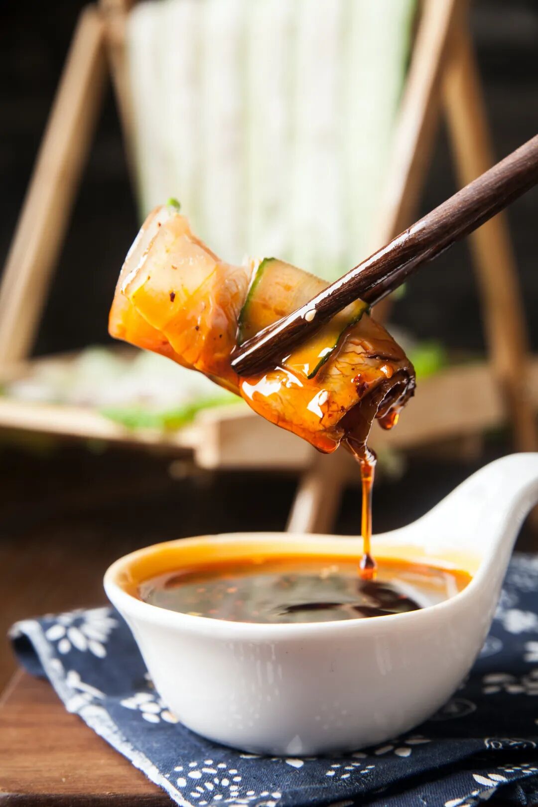 白肉好吃,少不了蘸水的衬托。李庄白肉的蘸水各家略有不同,有的突出蒜香,有的突出红油麻香。配上蘸水的白肉香润盈口,十分清爽。在云南,还有类似的凉白肉,蘸水是甜酱油、芝麻酱、辣油等配制,甜酱油让凉白肉多了一层咸鲜回甜的口味。