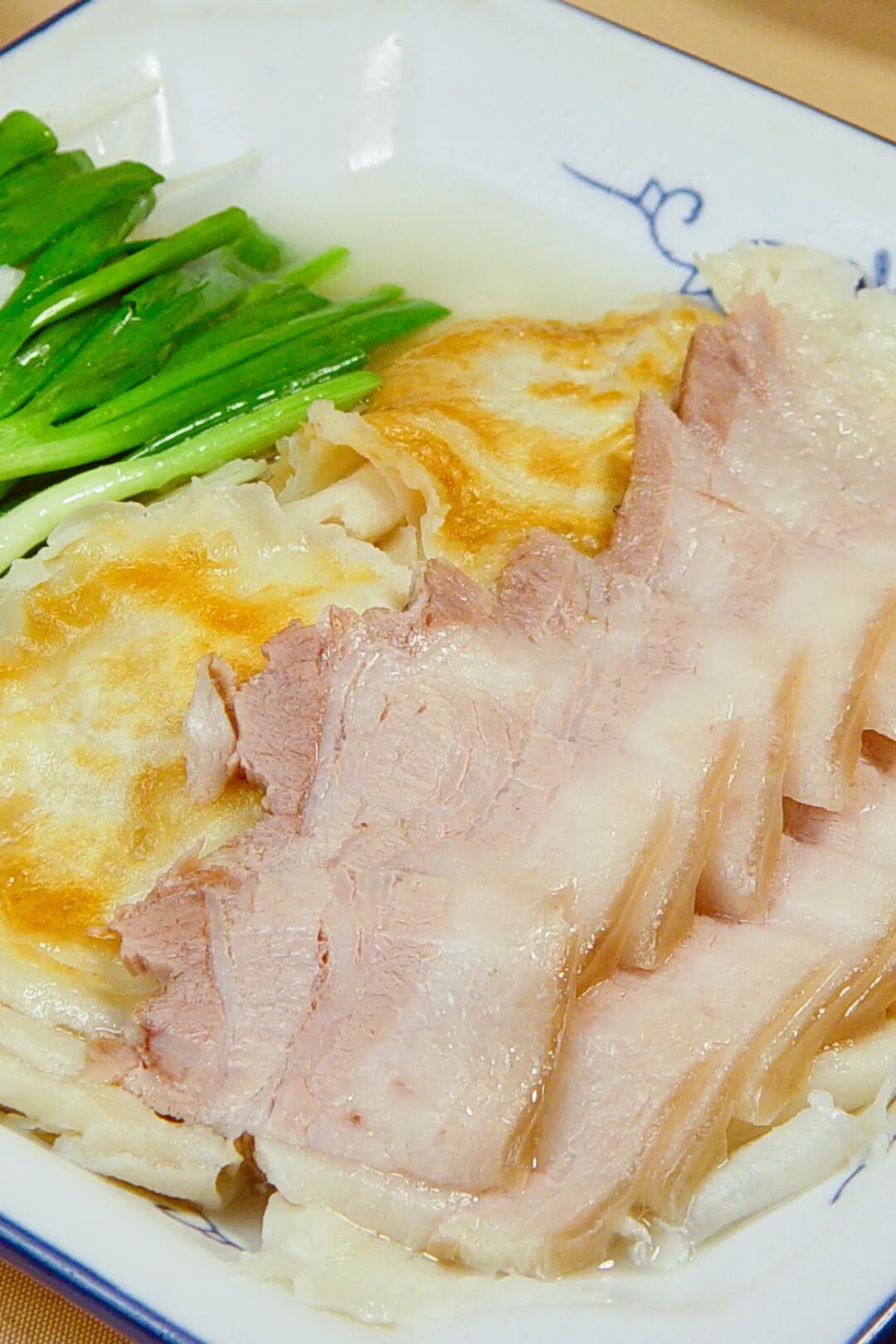 白肉之“白”,是色白,肥多瘦少,白如凝脂;也是“白煮”,清水炖煮,有时候甚至连盐也不加;还是“白味”,蘸料从简,突出肉的原汁原味。