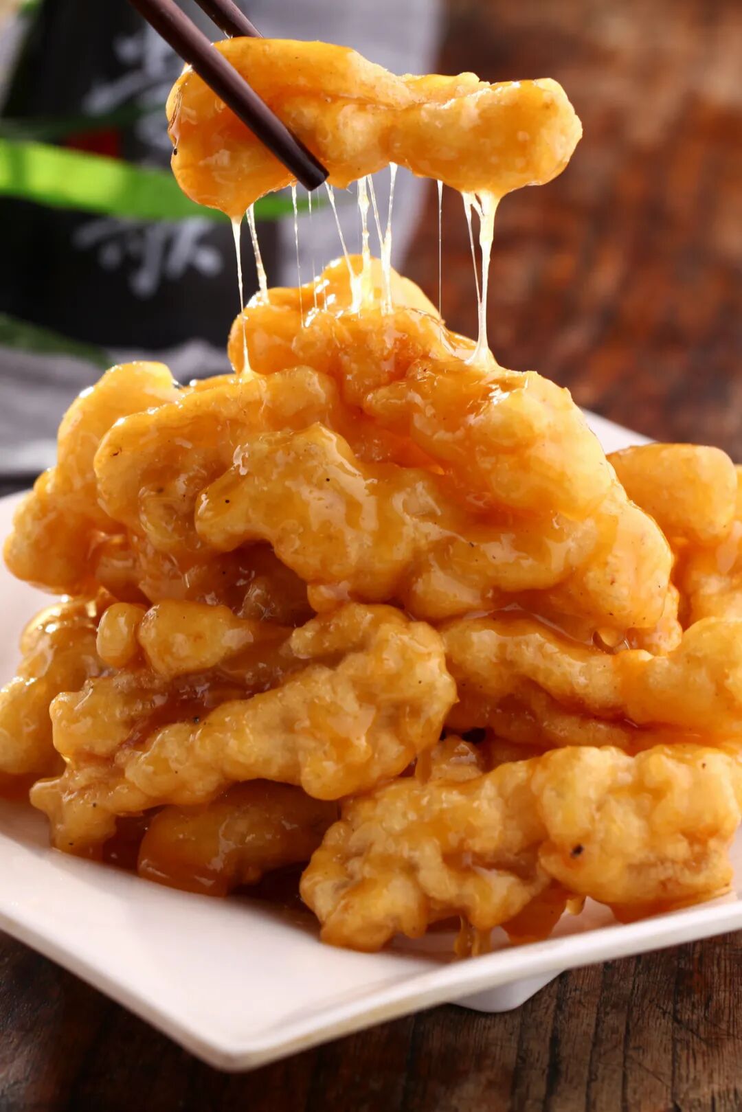 酥白肉,源自鲁菜中的“拔丝白肉”。