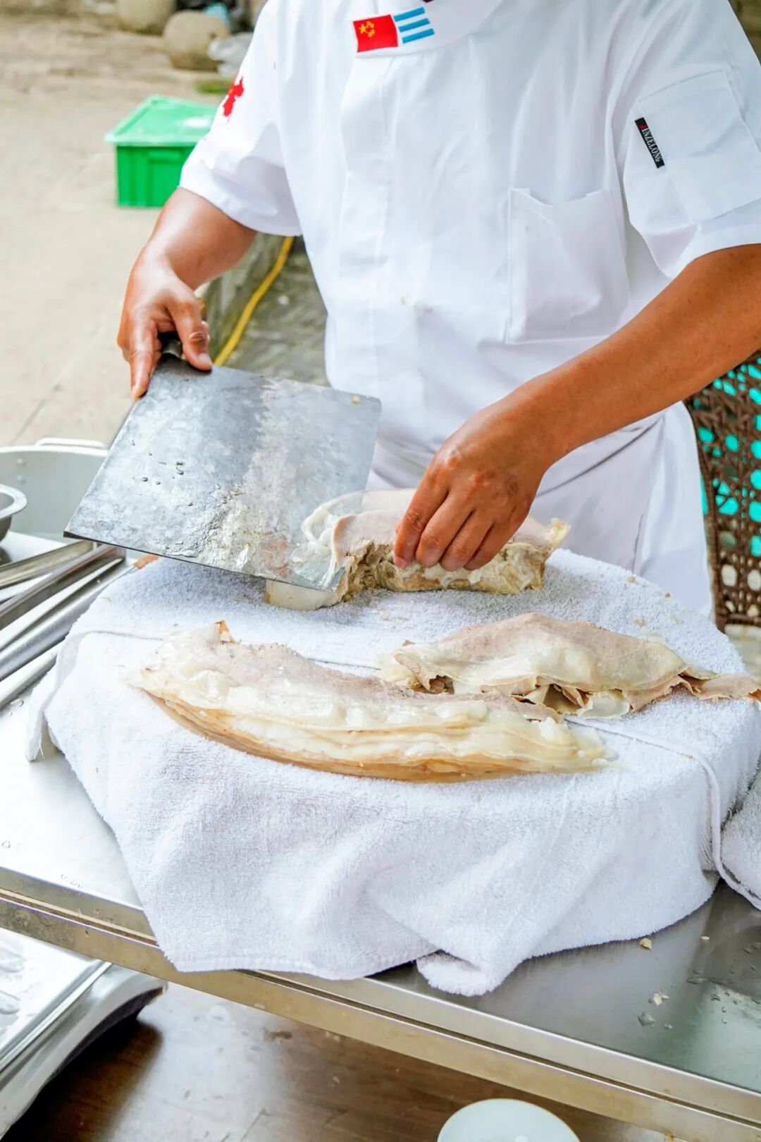 李庄白肉更见刀工,每一片都薄如蝉翼。