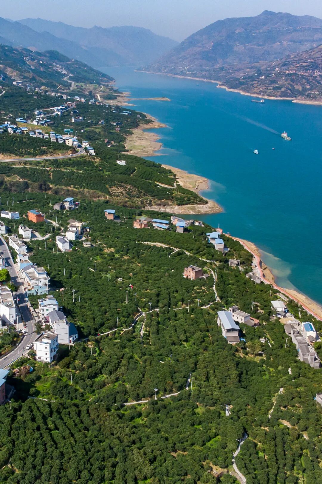 重庆奉节,长江两岸遍布柑橘果林。
