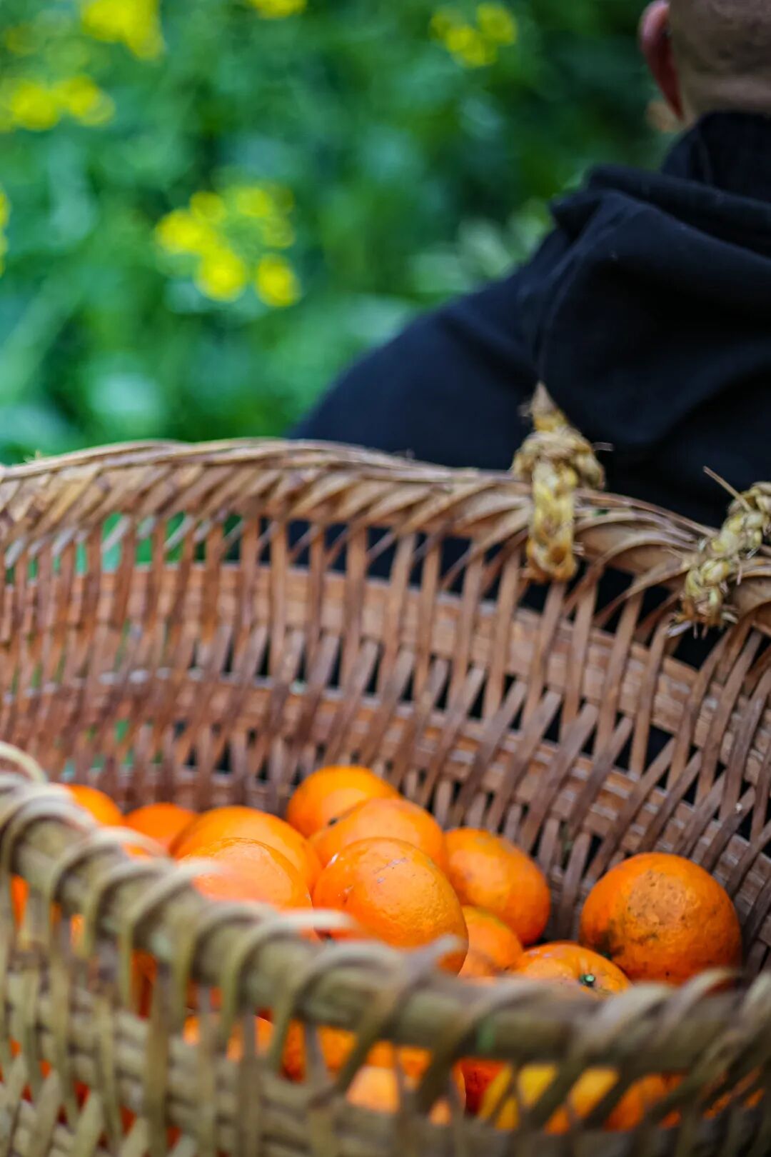 一箩柑橘,是人们丰收的橘黄色。