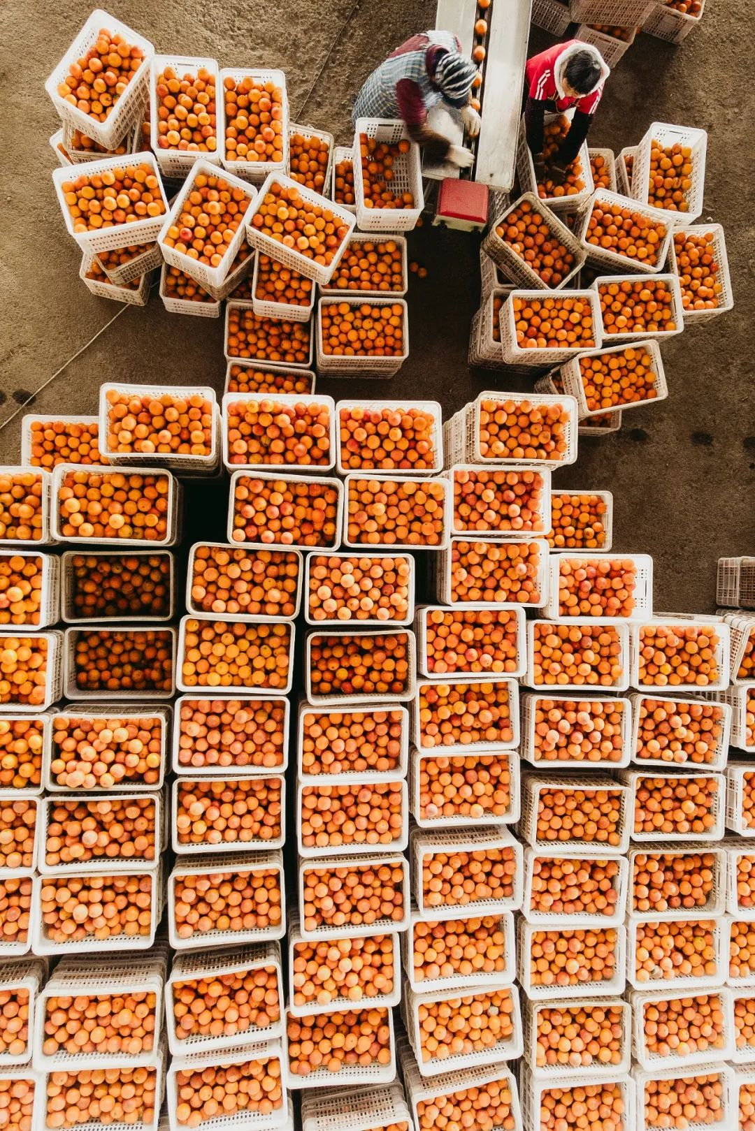 丰收的橙子,正在进行分拣。