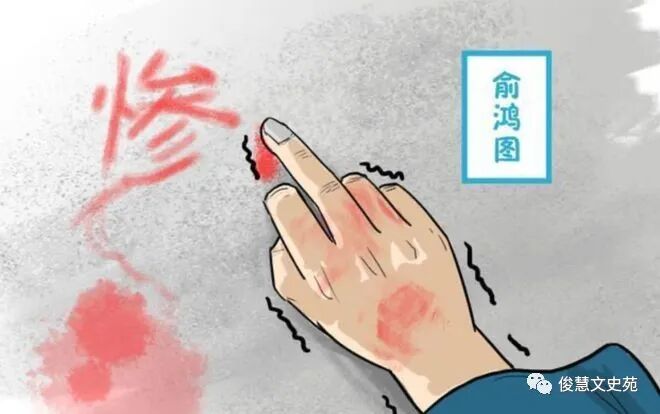 公元1734年,俞鸿图被判处腰斩,刽子手一刀砍下,身体一截两段。上半身在地上乱滚,嘴里嗷嗷的惨叫声响彻云霄,他用手蘸着自己流出的血写完7个“惨”字,才慢慢死去。