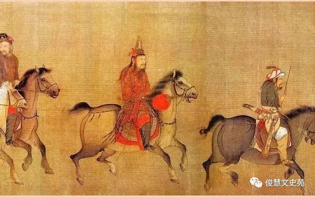 当众臣都被他吓破胆后,他又让两个儿子骑马并立于自己帐前,让大臣们来选明君,选谁就去牵谁的马缰绳。