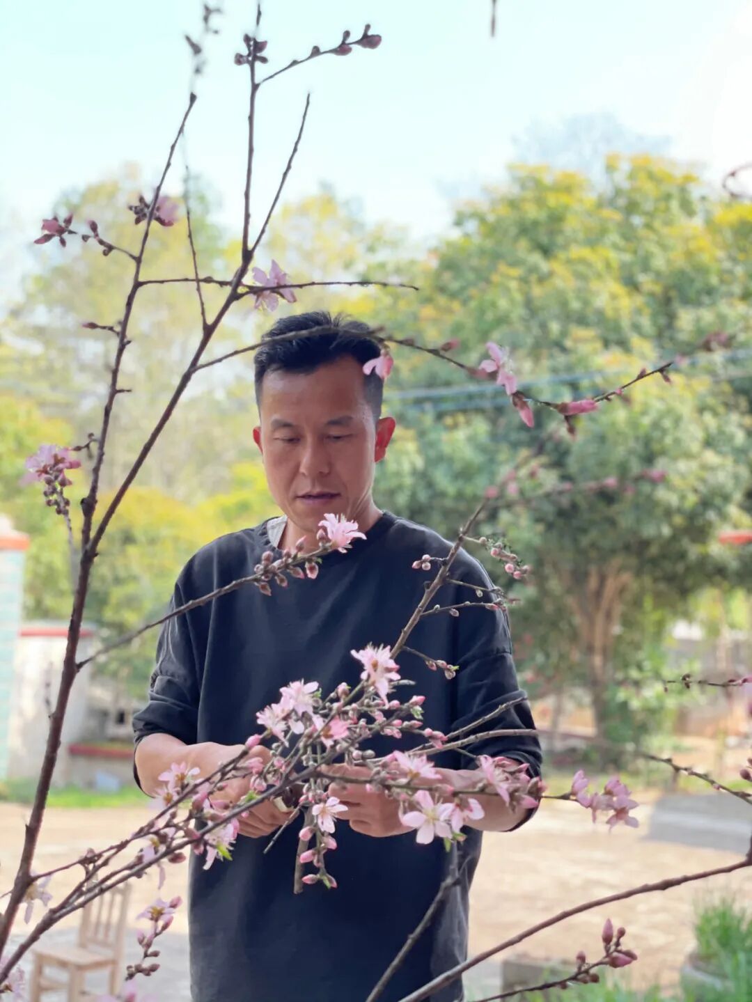 今天插花的时候,我是想明白了。我不远千里来湖南的农村种一颗树,为这些虫子种,它们每年有桃吃,我也是做了贡献的,或许,我曾经也吃过它们很多桃,只是不知道是哪一世而已
