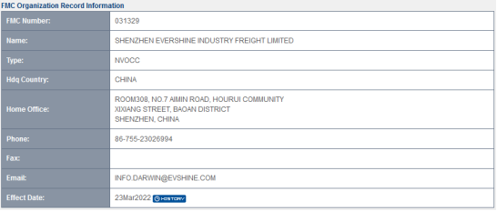永信兴业国际货运代理有限公司FMC注册号码:031329