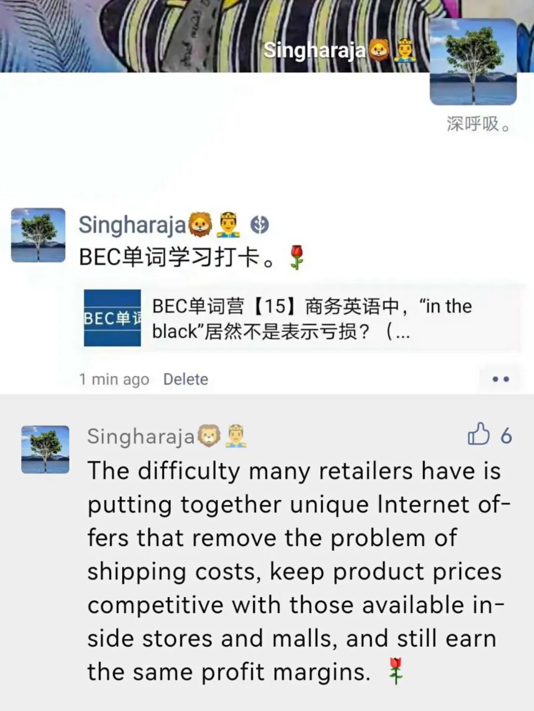 参与文章留言并转发朋友圈+文字“BEC单词学习打卡”,截图回传后台,下一个幸运儿说不定就是你哦~