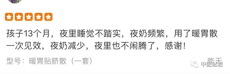 有一个1岁多的患儿,夜间睡眠不安,夜奶频繁,用了我的验方暖胃贴脐散,一次就见效,当晚患儿睡眠安稳。