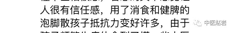 还有一些儿童免疫力低下,频繁感冒,我先用消食泡脚散消食,再用健脾泡脚散运脾,增强脾胃功能,免疫力提升了,感冒次数少了。用消食泡脚散是减轻脾胃当下负担,因为现在许多孩子都积食,吃的太多,超过脾胃运化吸收的能力,结果把脾胃“累”病了,此时先减轻脾胃负担,再增强其机能,免疫力自然提升。