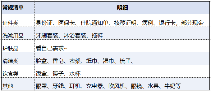 我把住院前需要准备的清单分为两部分,一个是常规清单,也就是但凡住院就就需要准备的;另一个是针对肾穿需要准备的特殊清单。