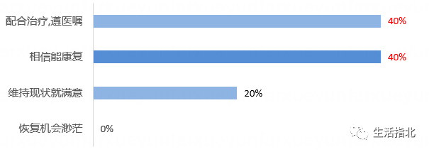 有55%的家人们相信我们肯定能恢复,而认为配合治疗、听从医生的家人仅有27%。