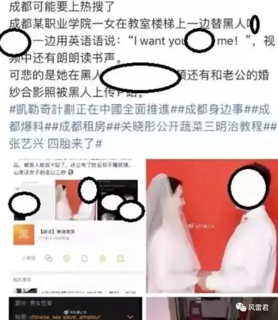 近日,就有四川某职院传出黑人与已婚女教师的不雅视频。