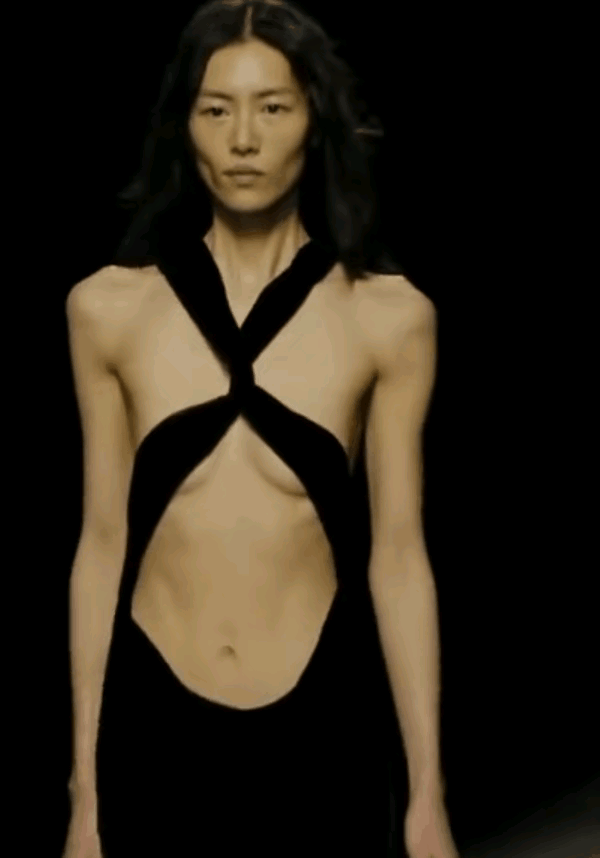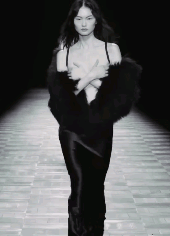 这是超模刘雯的压轴秀。上身仅余片缕,已经是极为大胆了。