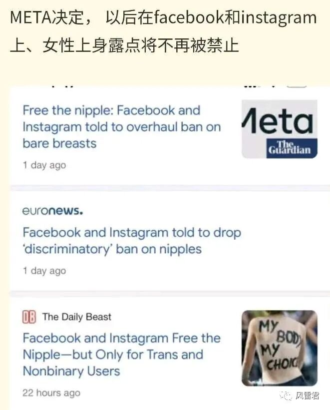 META宣布,旗下的脸书和INS不再禁止女性上身露点。