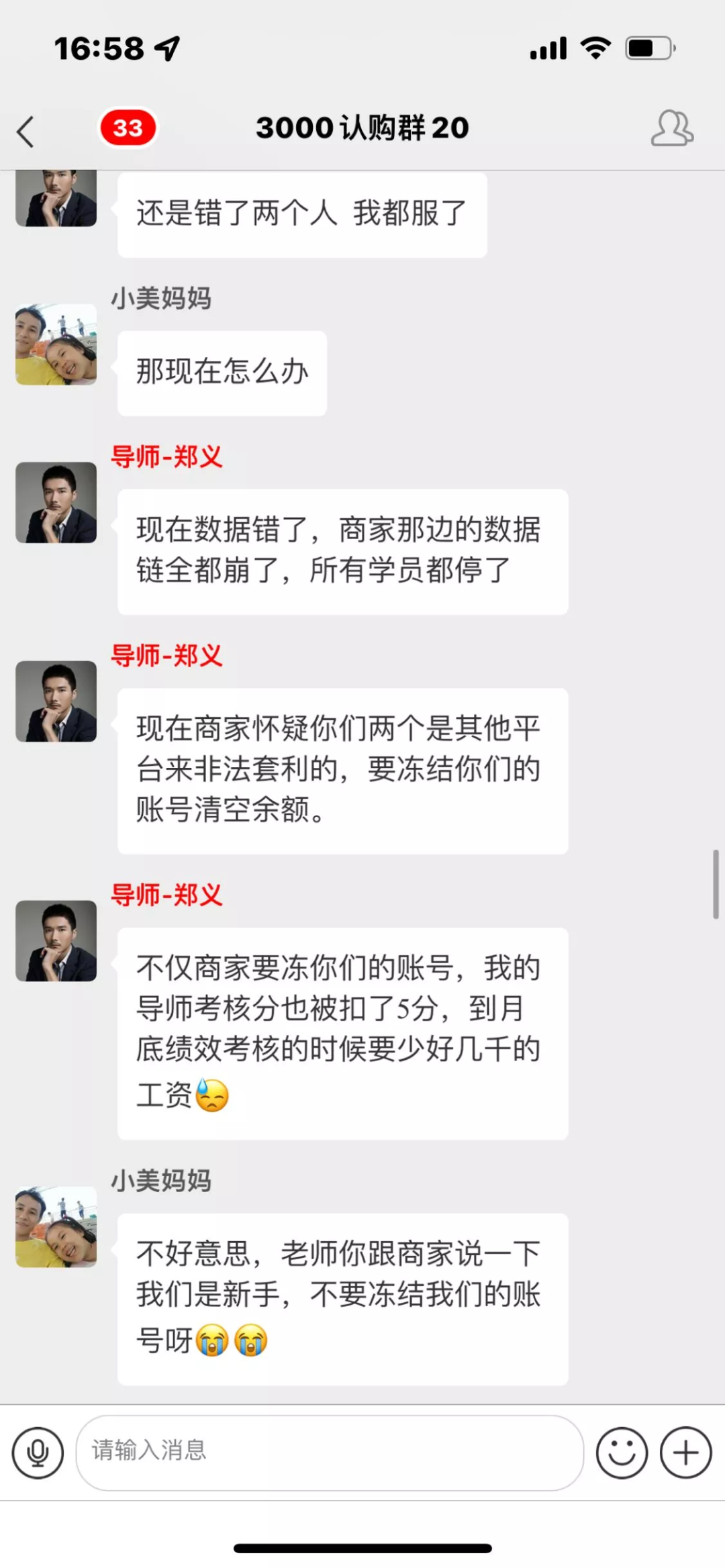 群里还有一个人也是操作失误了,然后对方训斥了她们半天后,说和商家协商后有补救单。她们就同意了。
