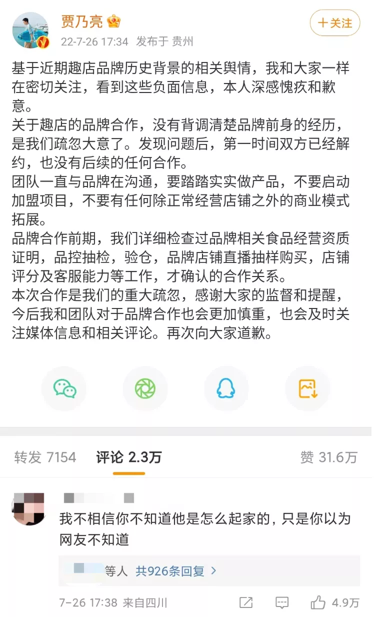 后脚,贾乃亮也在网友的催促中出现,发表了致歉。