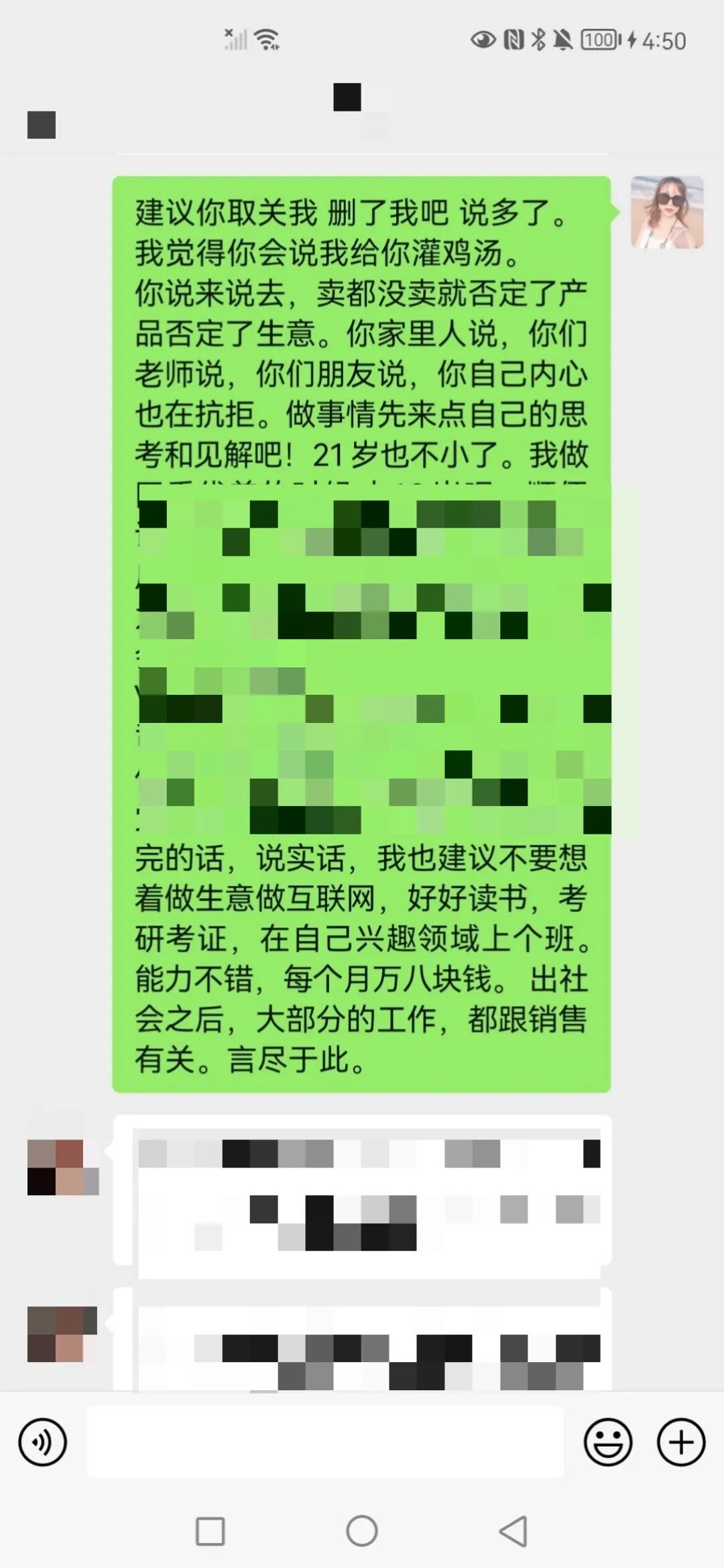 无独有偶,有个好友加到我之后说自己被毒鸡汤洗脑了,做了错误的决定。