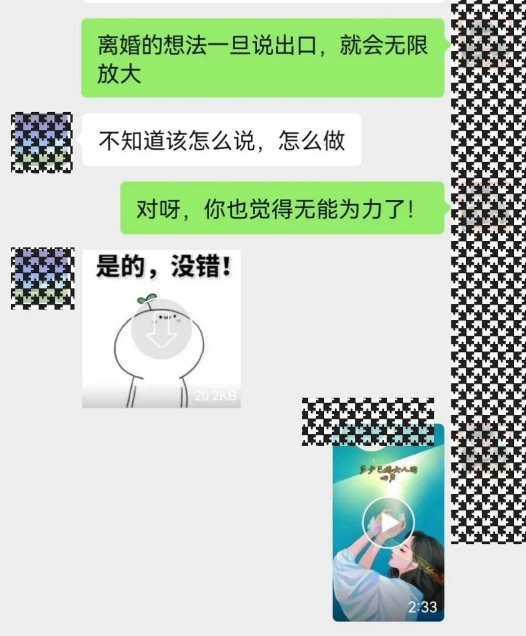 最近我一姐妹给我发消息,说想离婚了。