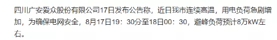 值得庆幸的是,目前国家电网已经宣布尽全力支持川渝地区的电力供应,发挥国家电网资源配置的优势作用。