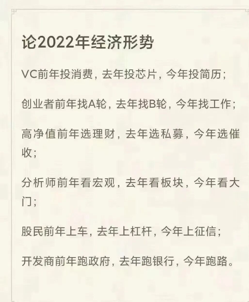 所以,普通人,少消费,不负债,别幻想发财去做大投资,保现金流,赚多少,花多少,开源节流,把这个漫长的周期熬过去才是正道。
