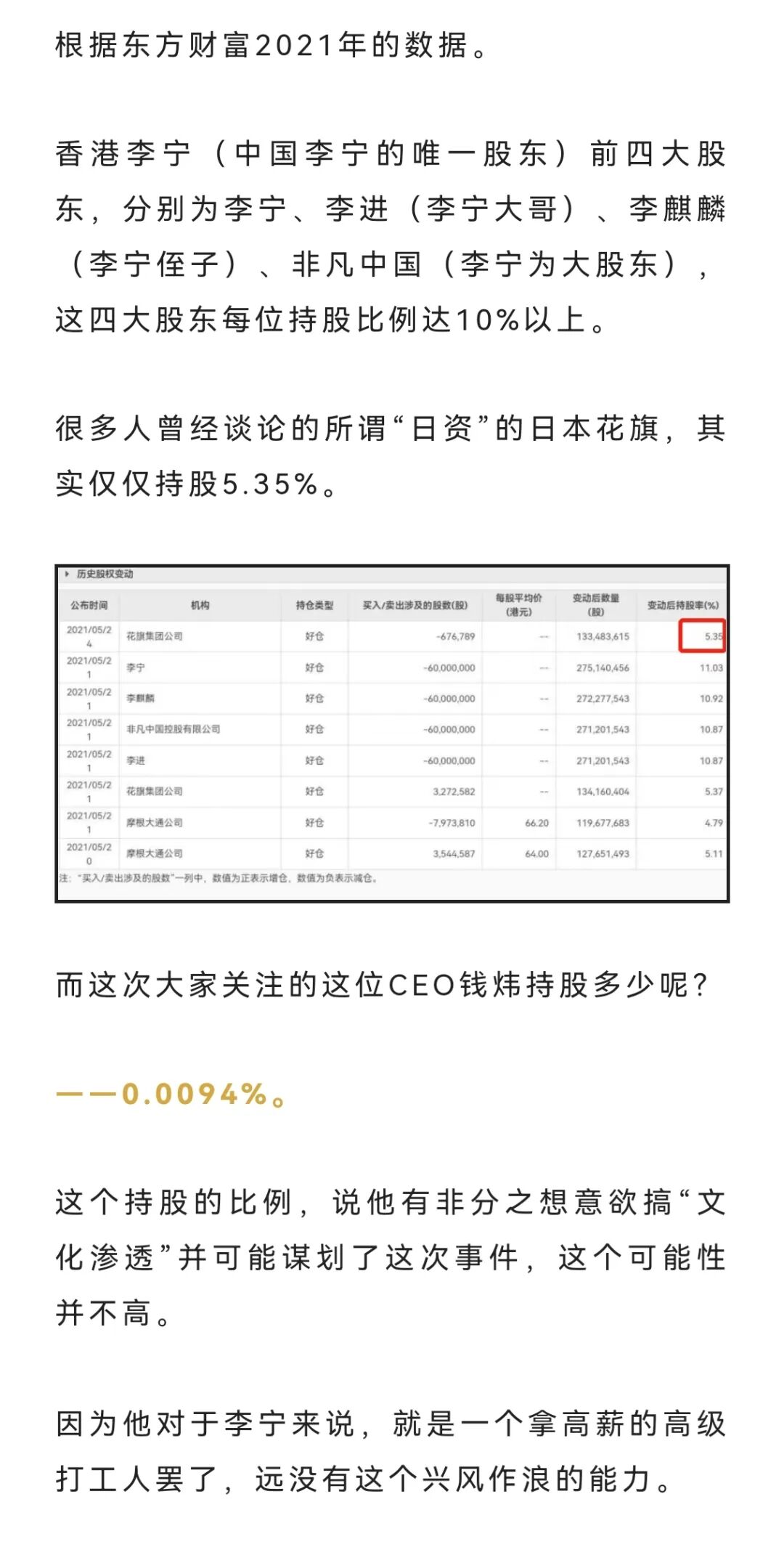 值得一提的是,有网友还发现,李宁集团的现任联席行政总裁及执行董事钱炜还是位日籍华人。