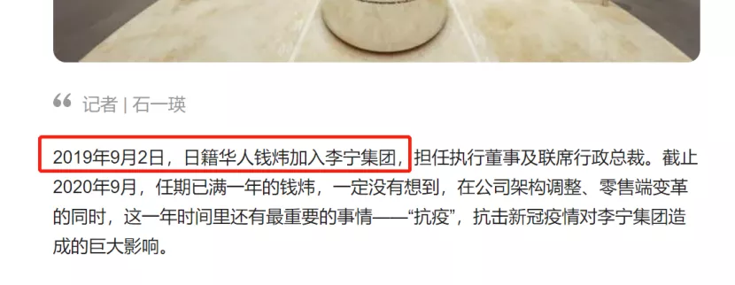先说说,我们称之为高级打工人的李宁CEO钱炜。